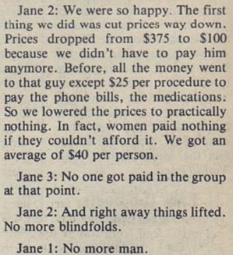 In 1968, the collective began as a counseling service of the Chicago Women’s Liberation Union. They operated under the pseudonym “Jane,” running ads with phone numbers. When a woman called, she was comforted, given a counseling appointment, and set up with an underground abortionist.